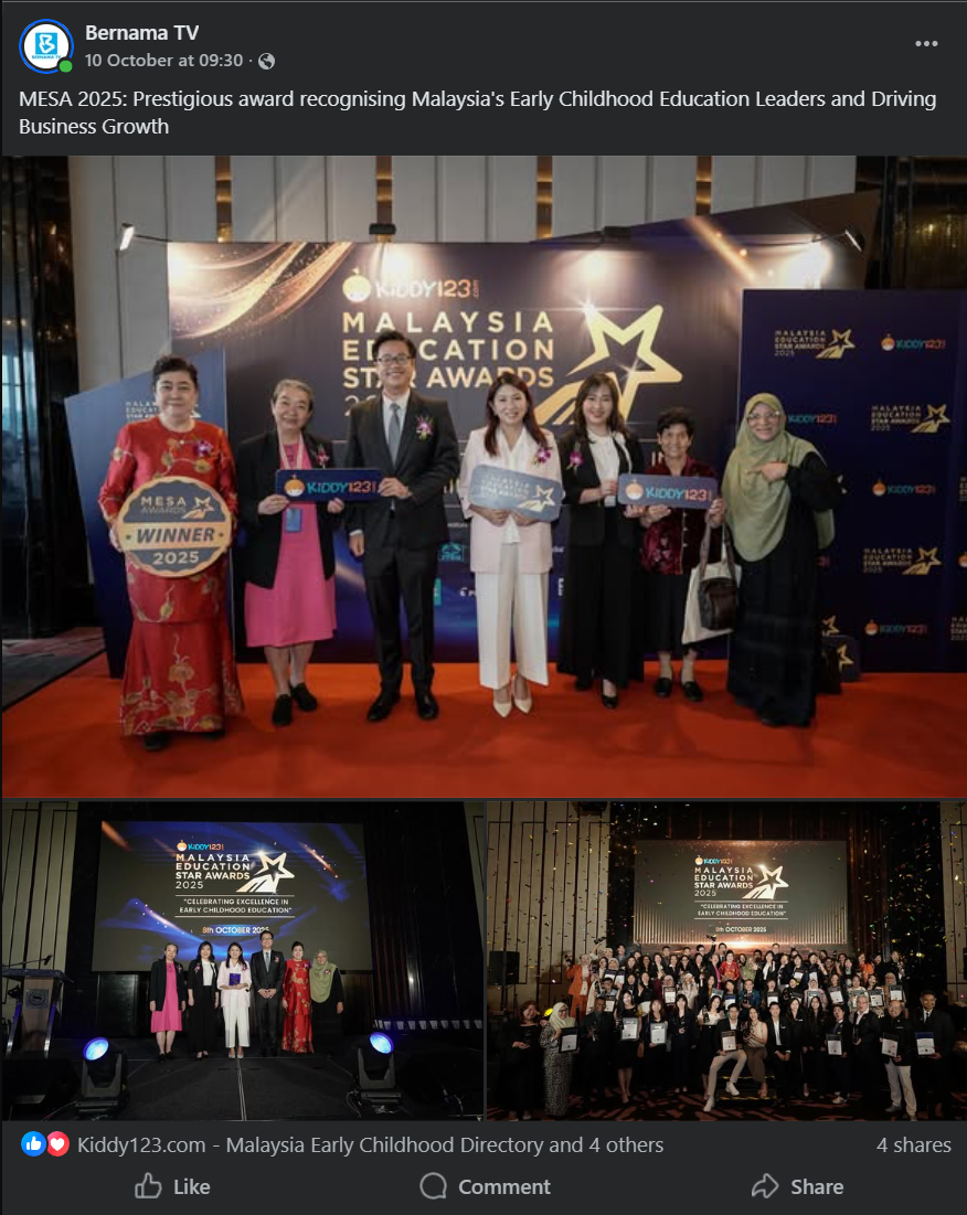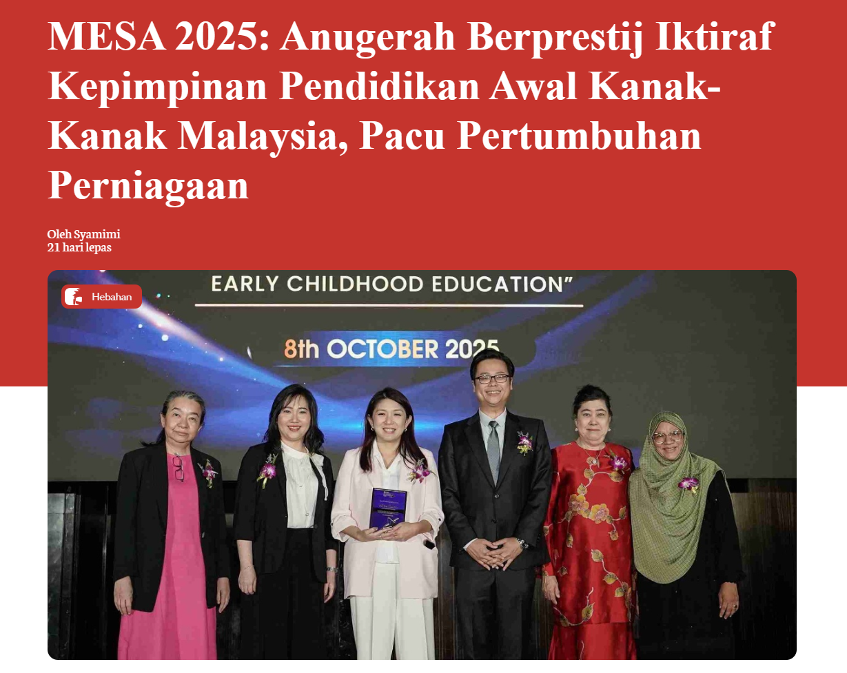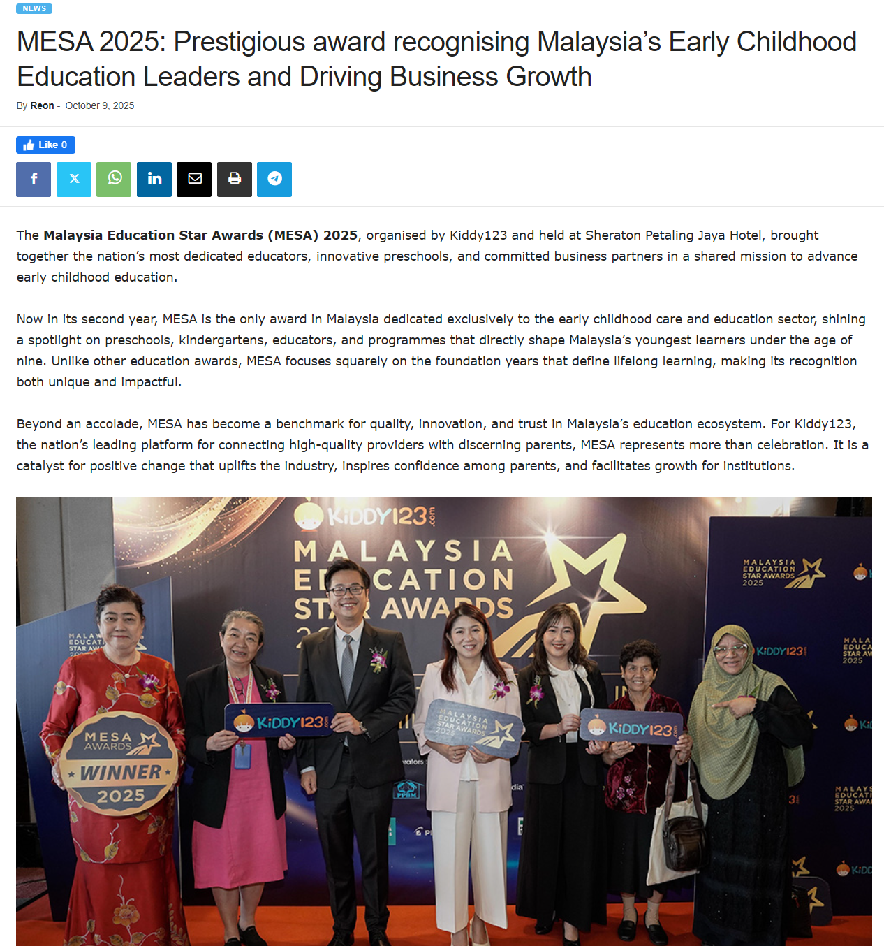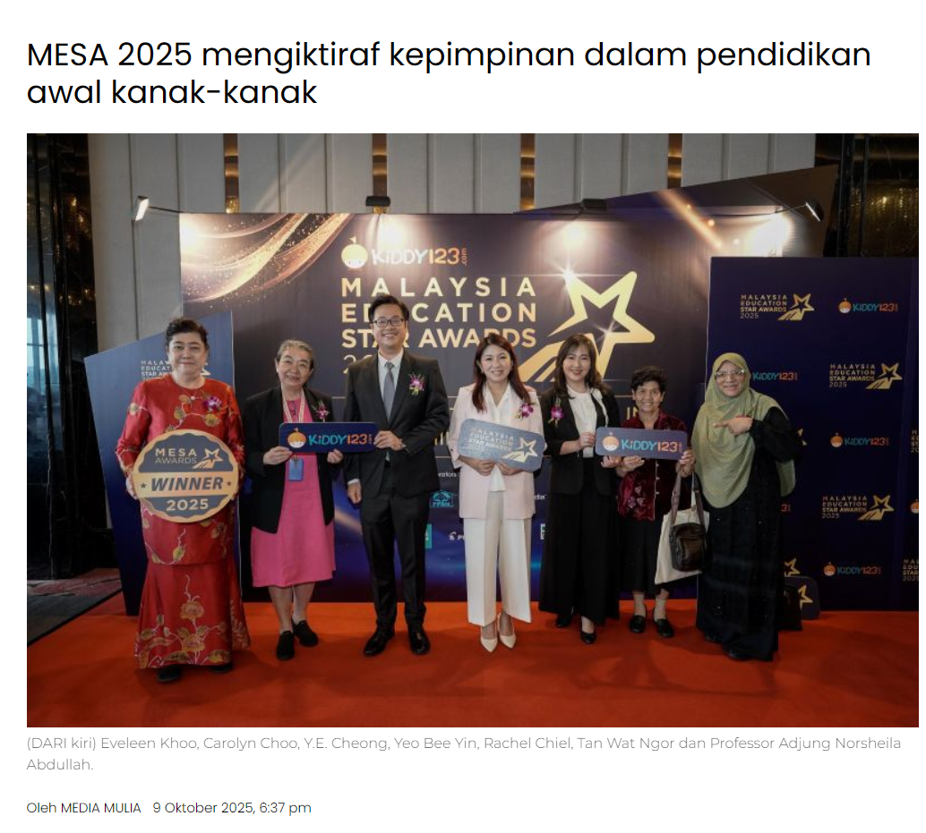The Malaysia Education Star Awards (MESA) 2025 by Kiddy123 honours and celebrates the outstanding contributions of businesses and organisations within the early childhood education sector.