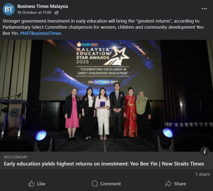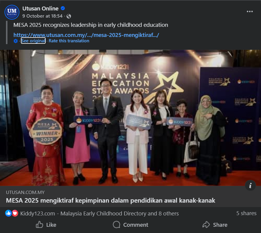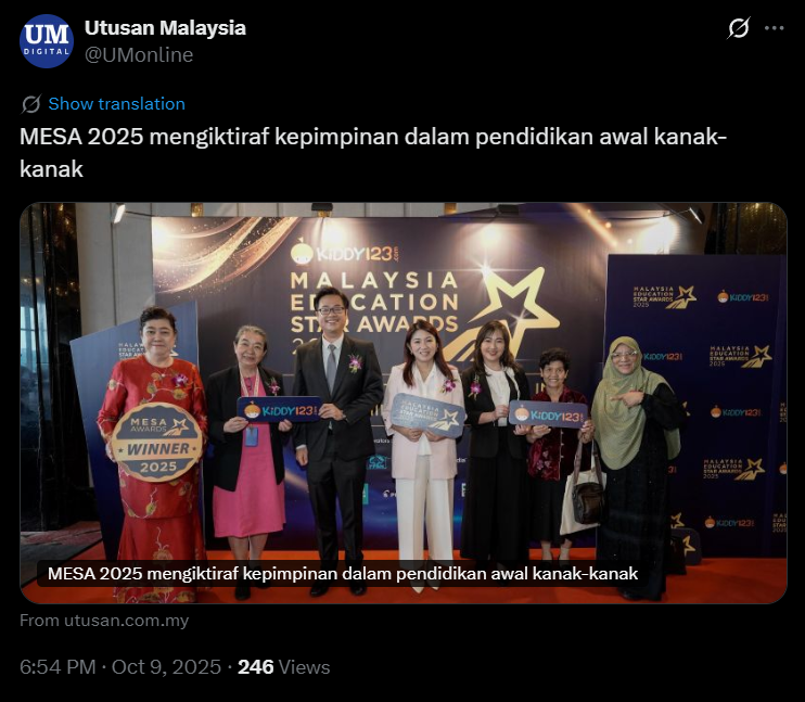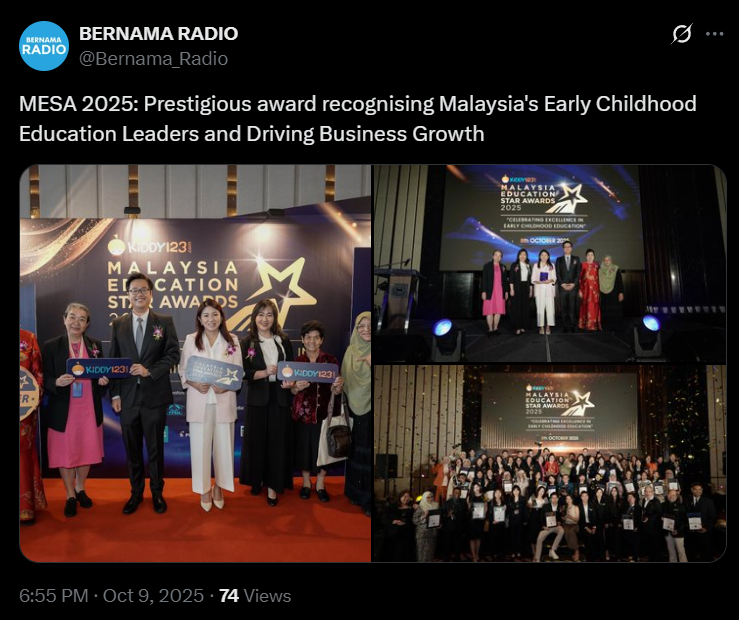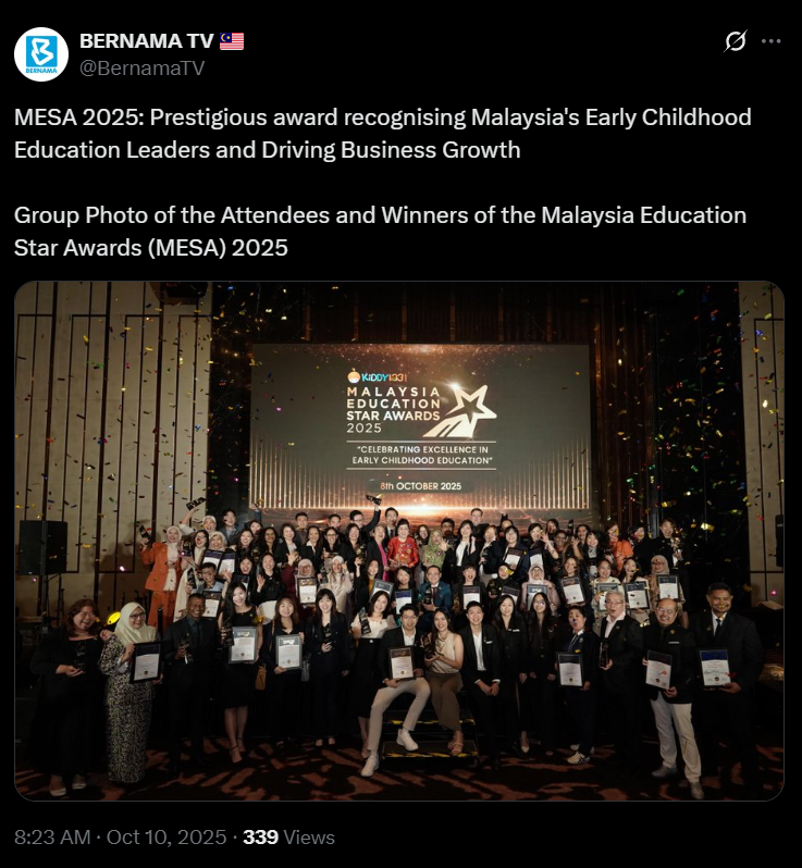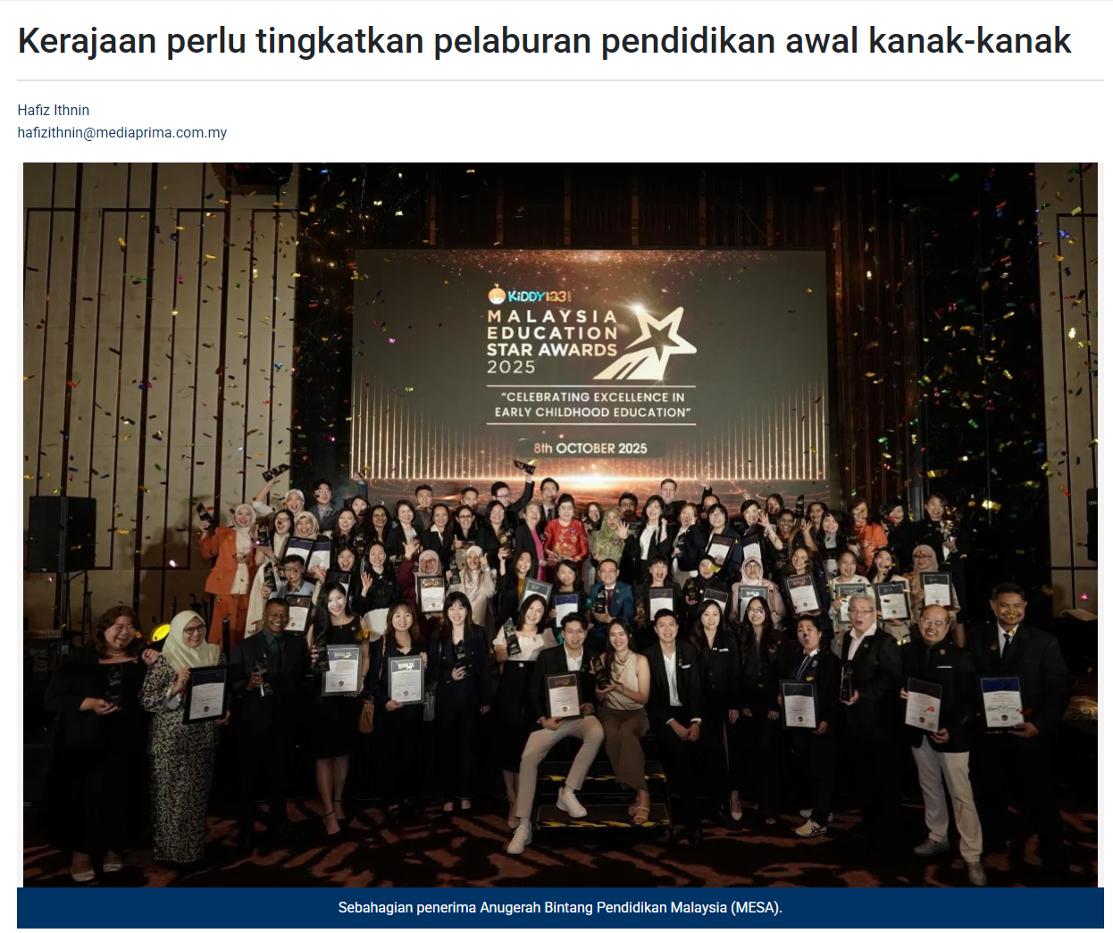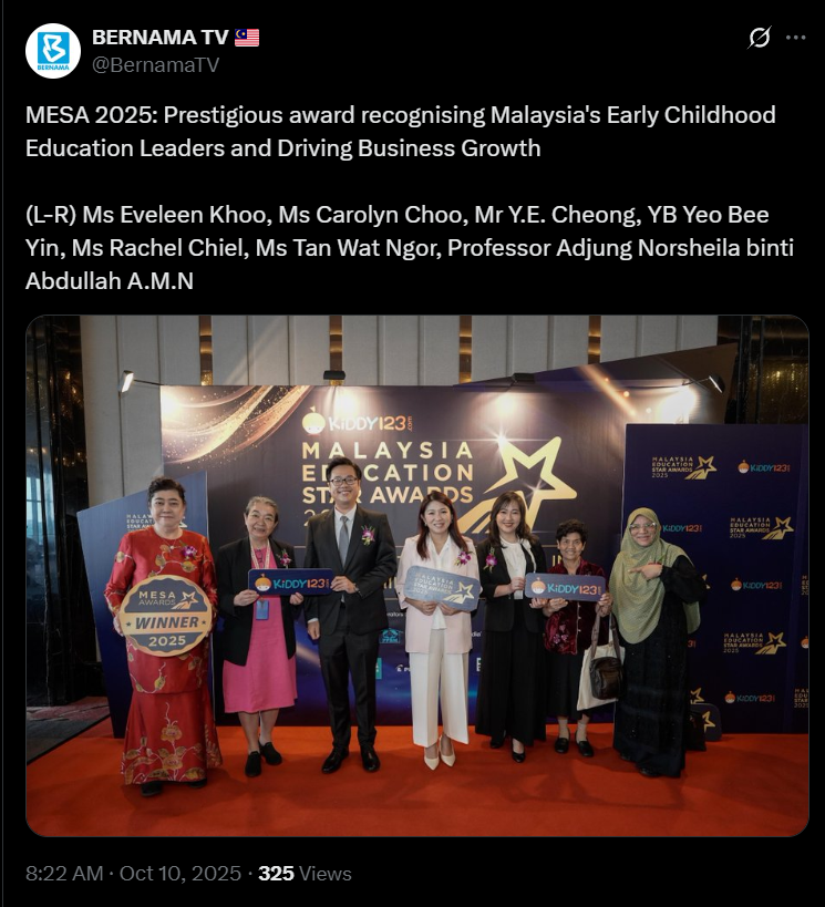 The Malaysia Education Star Awards (MESA) 2025 by Kiddy123 honours and celebrates the outstanding contributions of businesses and organisations within the early childhood education sector.